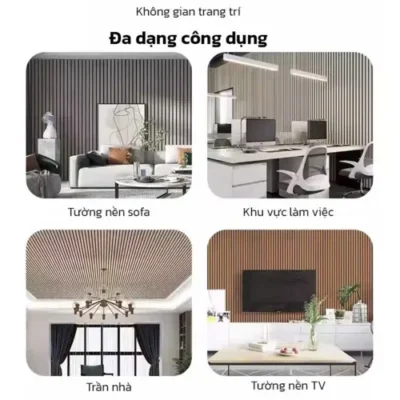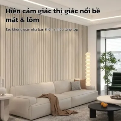Với kích thước 60cm x 300cm, mỗi cuộn có thể phủ diện tích khá lớn, giúp tiết kiệm chi phí vật liệu và thời gian thi công. Bề mặt lam sóng mang lại hiệu ứng trang trí sang trọng, giúp không gian trở nên nổi bật và có chiều sâu hơn.
