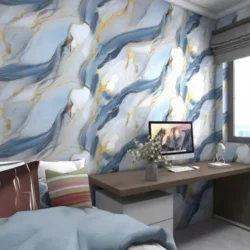 Cuộn Xốp Dán Tường PVC Sẵn Keo 120cm x 300cm Đá Cẩm Thạch Xanh Biển